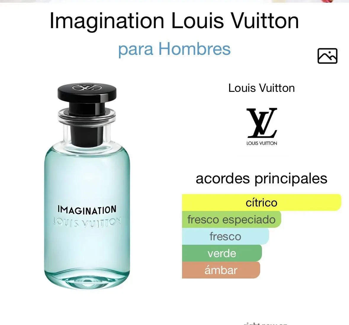 Imagination de Louis Vuitton es una fragancia de la familia olfativa Cítrica Aromática para Hombres. Imagination se lanzó en 2021. La Nariz detrás de esta fragrancia es Jacques Cavallier Belletrud. Las Notas de Salida son cidra, bergamota de Calabria y naranja siciliana; las Notas de Corazón son ner...